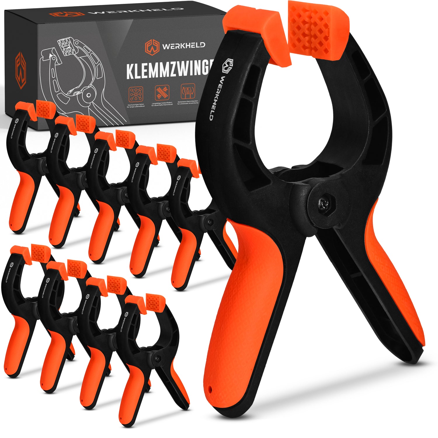 - 🛠️ 10 FEDERKLAMMERN - Mit dem WERKHELD Zwingen Set erhalten Sie 10 hochwertige Federzwingen - damit Sie für jedes Profi- & Hobby-Projekt eine Klemme, Zwinge oder einen Spanner zur Hand haben!